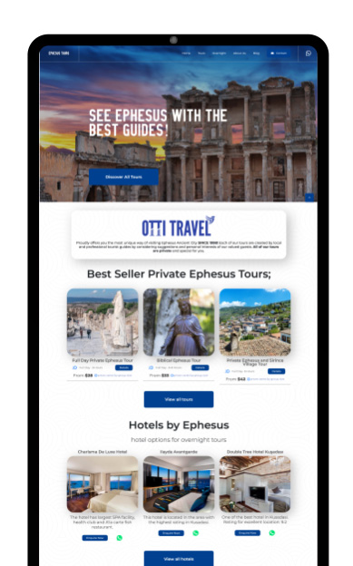 Otti Travel projesi kapsamında ynsocial tarafından 360° Marka & Web Projesi, Logo Tasarımı, Kurumsal Kimlik Tasarımı, Özel UI/UX Web Tasarımı, Web Geliştirme & Kodlama, Admin Panel Geliştirme, İçerik Entegrasyonu, SEO Kurulumu, Anahtar Teslim Web Sitesi hizmetleri verilmiştir. Bu proje Seyahat Acentesi & Turizm sektöründe gerçekleştirilmiştir.