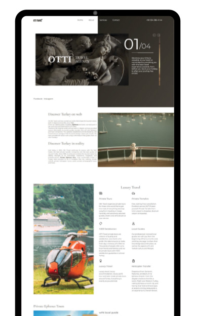 Otti Travel projesi kapsamında ynsocial tarafından 360° Marka & Web Projesi, Logo Tasarımı, Kurumsal Kimlik Tasarımı, Özel UI/UX Web Tasarımı, Web Geliştirme & Kodlama, Admin Panel Geliştirme, İçerik Entegrasyonu, SEO Kurulumu, Anahtar Teslim Web Sitesi hizmetleri verilmiştir. Bu proje Seyahat Acentesi & Turizm sektöründe gerçekleştirilmiştir.