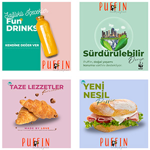 Puffin projesi kapsamında ynsocial tarafından Logo Tasarımı, Kurumsal Kimlik Tasarımı, Sosyal Medya Yönetimi, Reklam Yönetimi, Basılı Materyal Tasarımı, Grafik Tasarım, Fotoğraf Çekimi, Marka Danışmanlığı hizmetleri verilmiştir. Bu proje Butik Yiyecek & İçecek sektöründe gerçekleştirilmiştir.